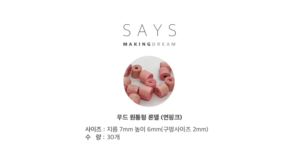 우드 원통형 론델 - 연핑크 7mm 입니다.