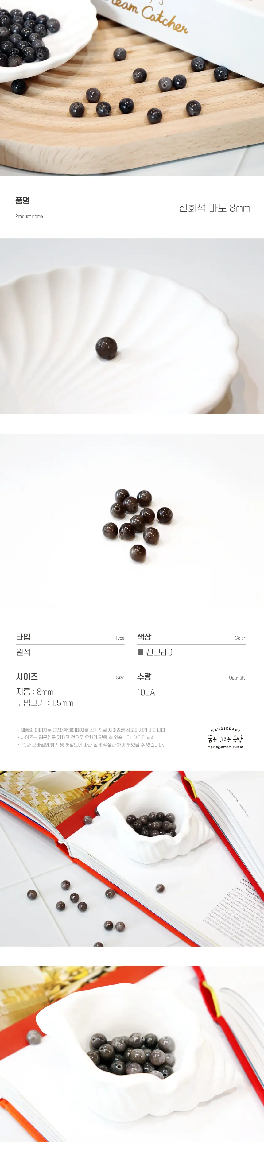 [8mm] 진그레이색의 마노석 8mm입니다!