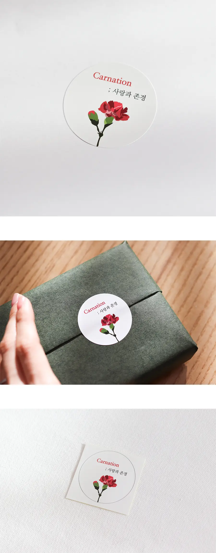 카네이션 일러스트가 그려진 원형 스티커입니다 :)