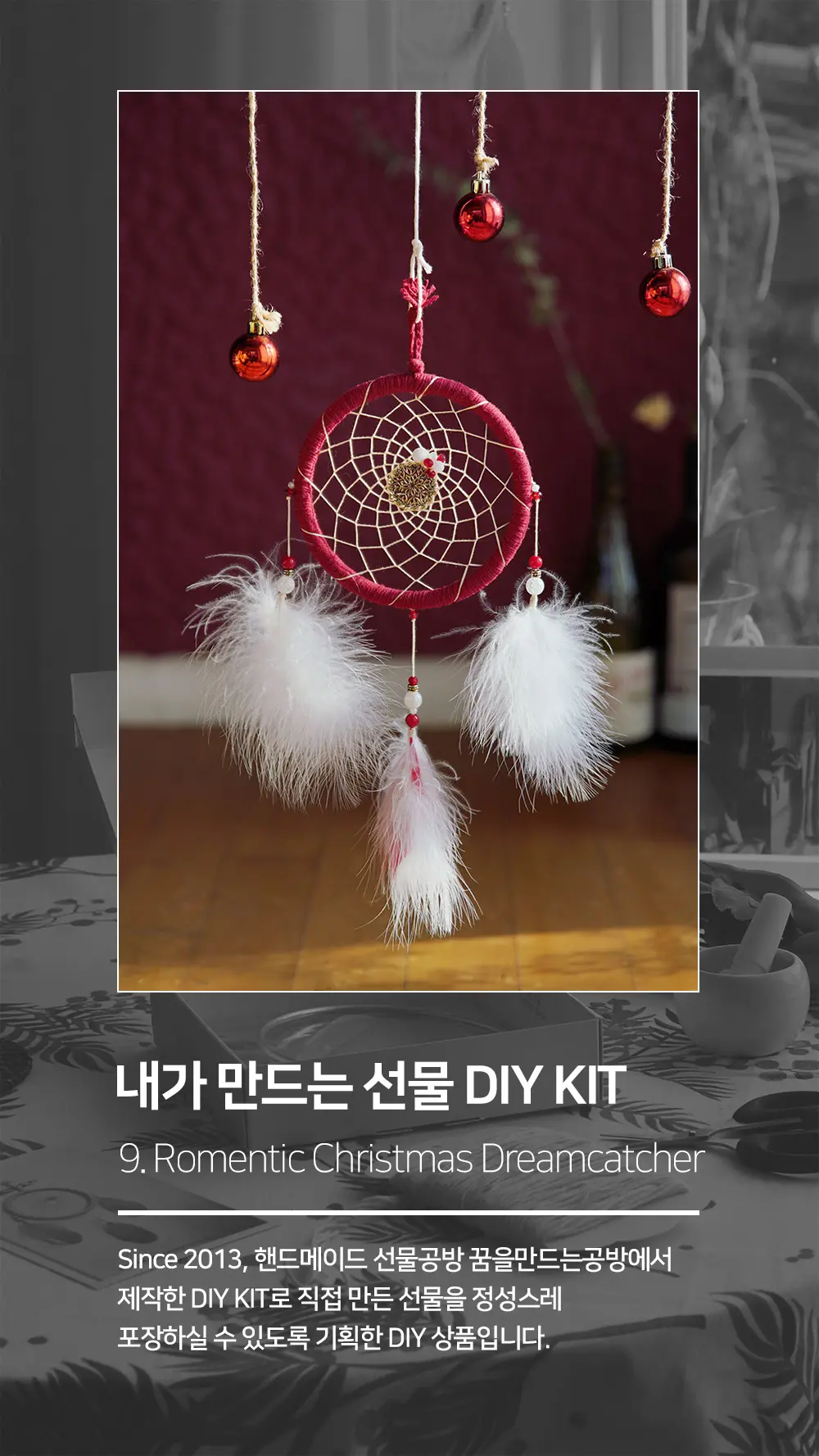 눈처럼 소복히 내리는 것같은 깃털을 다듬어 크리스마스 드림캐쳐를 만들어보세요!