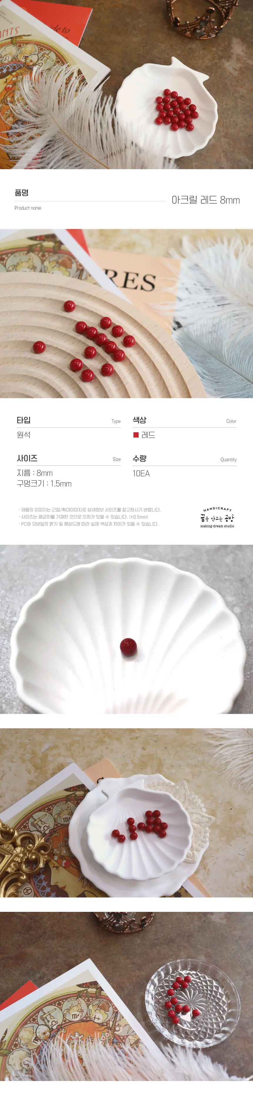 [8mm] 가벼운 재질의 아크릴 구슬입니다.