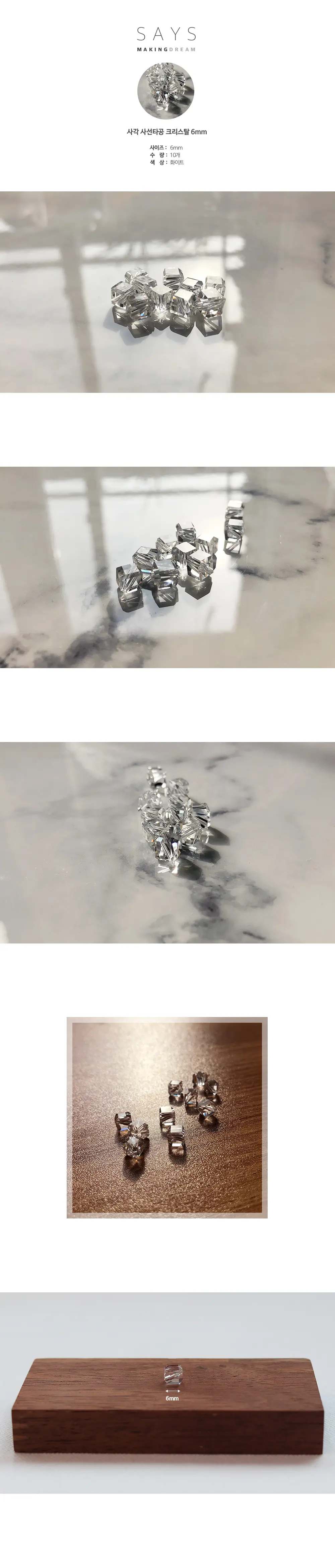 [k27] 사각 사선타공 크리스탈 6mm 10개