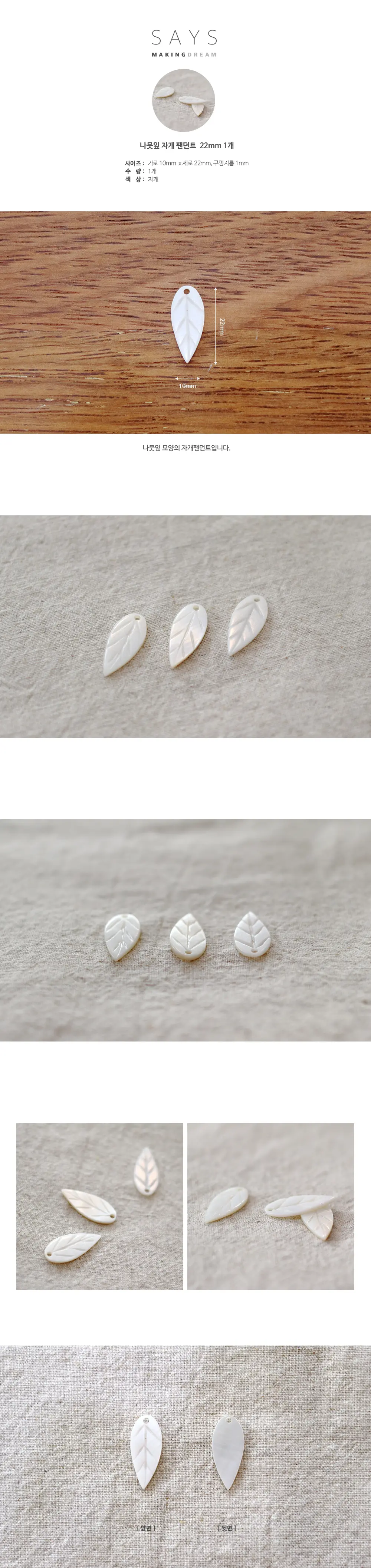 [p3] 나뭇잎 자개 펜던... [품절]