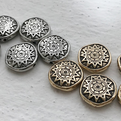 태양 문양이 있는 원형 론델입니다. 골드/실버 두가지 색이 있습니다.