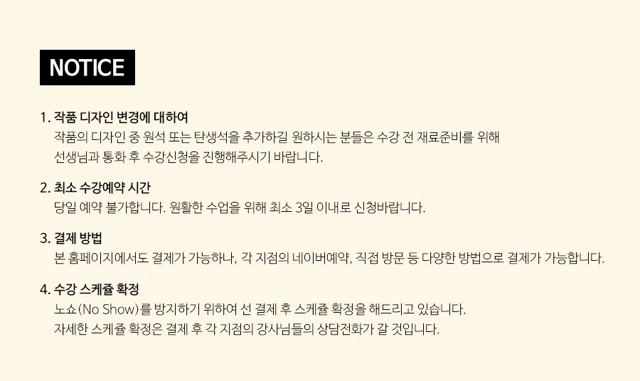 ::디자인 선택::1) 플라워홀더 원데이워크샵 2) 매듭모음 벽장식 원데이워크샵+15,000원 3) 하트 레이어드 벽장식 원데이워크샵+15,000원 4) 오픈사인 레이어드 벽장식 원데이워크샵+25,000원 5) 다용도 홀더 투데이워크샵+35,000원 6) 러스틱빌 투데이워크샵+75,000원 ::지점선택::인천점 수원점 평택점 아산점 대구점 부산점 대전점 전주점