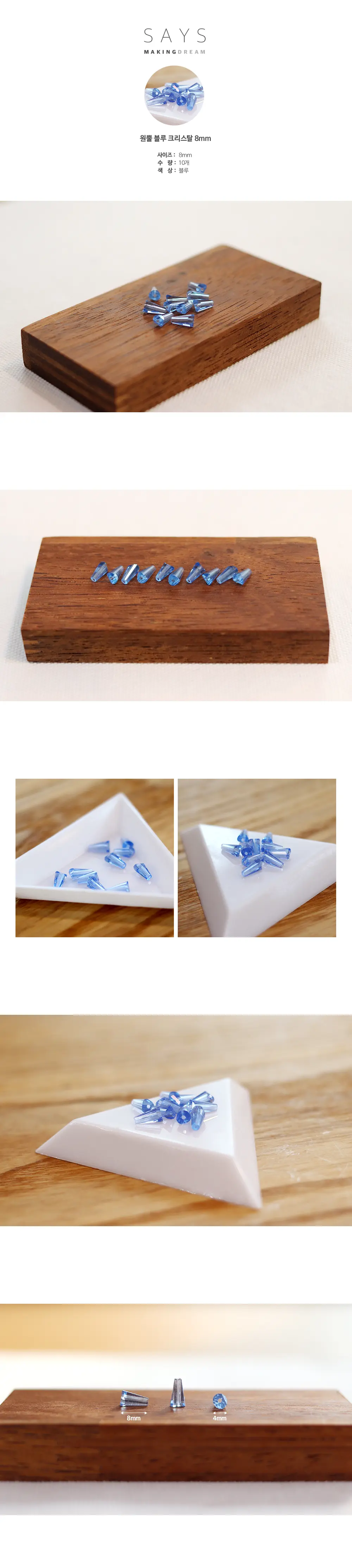 [k69] 원뿔 블루 크리스탈 8mm 10개
