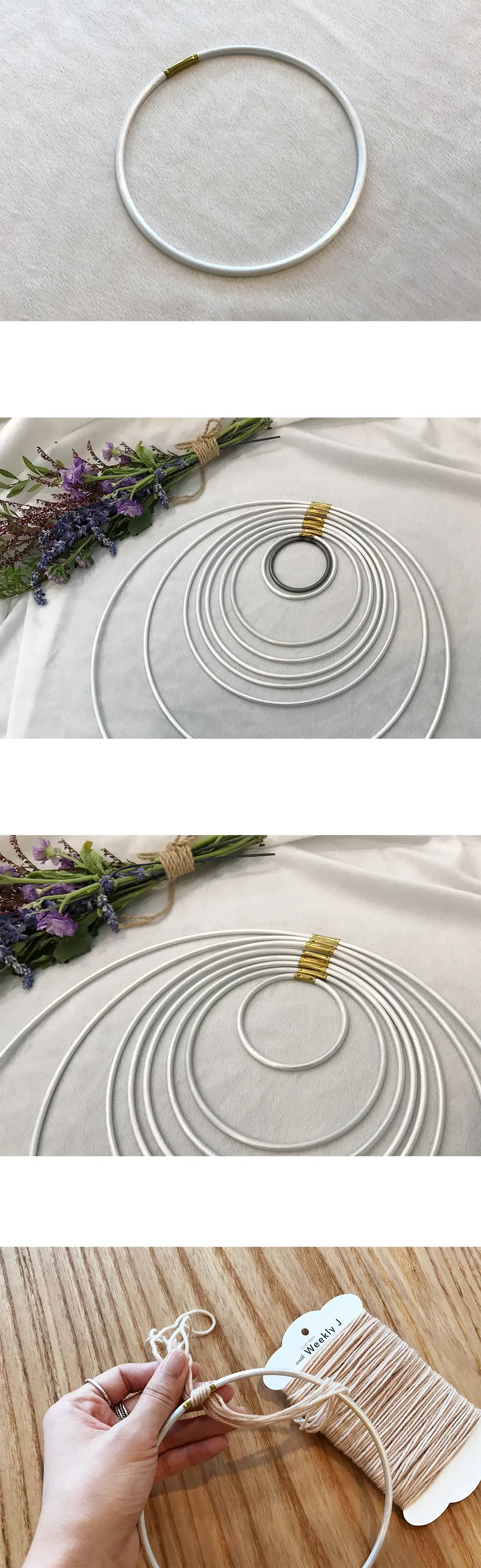 드림캐쳐를 만들기 위한 기본적인 재료인 링입니다. 12cm부터 30cm 링은 선물용, 인테리어용 드림캐쳐를 만들기에 적합합니다.