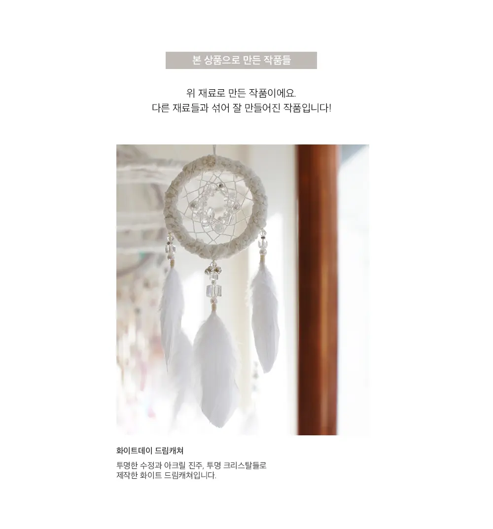 여자친구에게 기념일에 특별한 선물 어때요? 사탕처럼 투명한 크리스탈 론델이 알알이 박힌 화이트 드림캐쳐입니다!