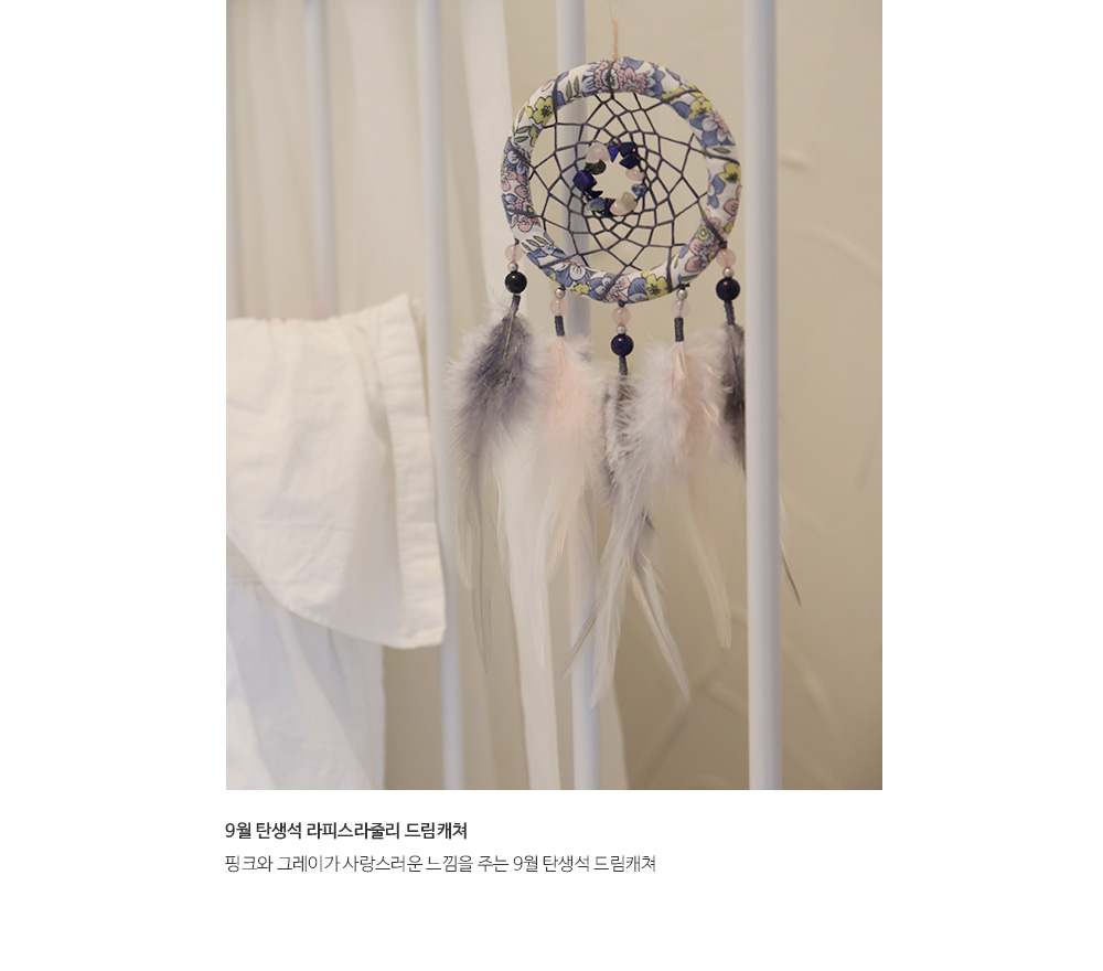 화이트 파괴석과 파스텔 블루가 만나 반짝임과 순수한 분위기를 만드는 드림캐쳐