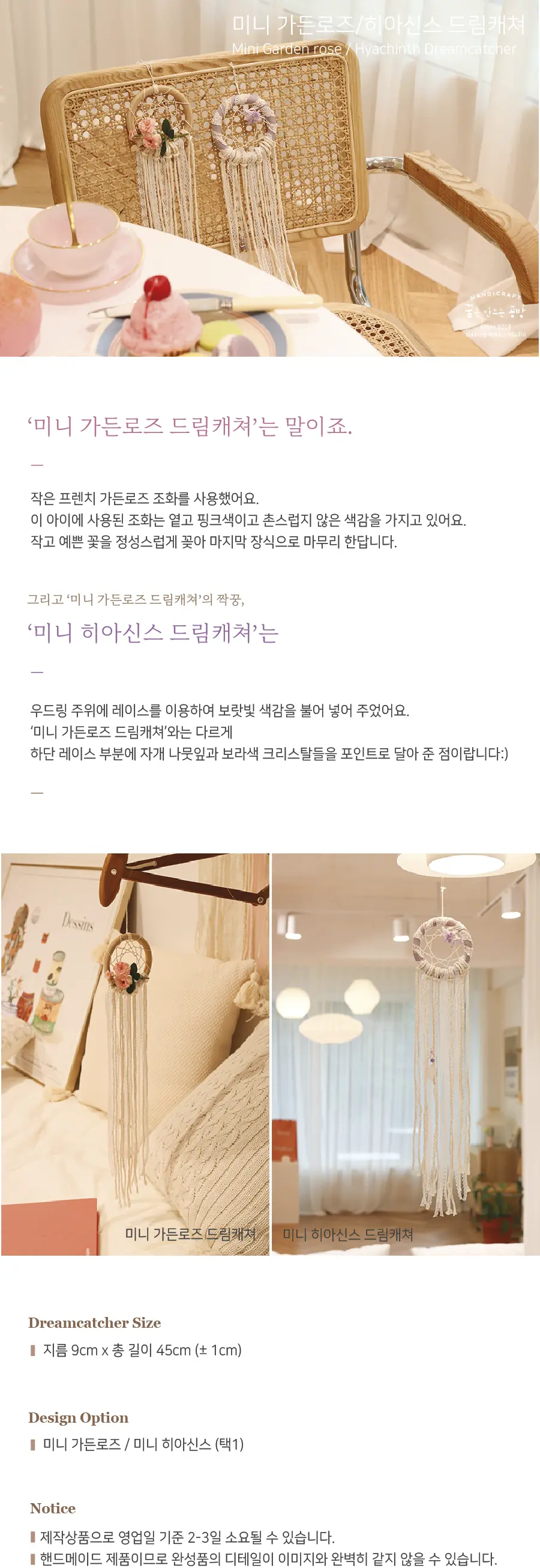 인테리어용으로 좋은 미니 드림캐쳐 2종입니다.
