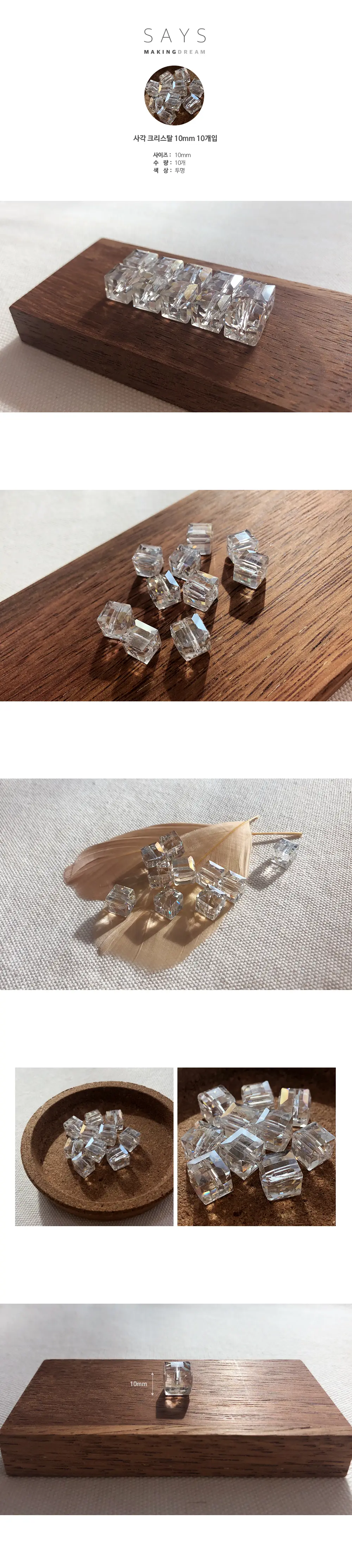 [k23] 사각 크리스탈 10mm 10개