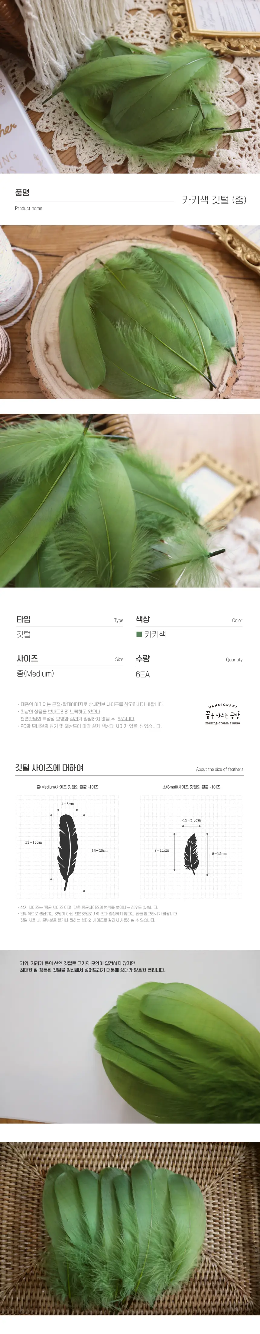 카키색 깃털입니다. 색감이 세련되게 잘 나왔어요!