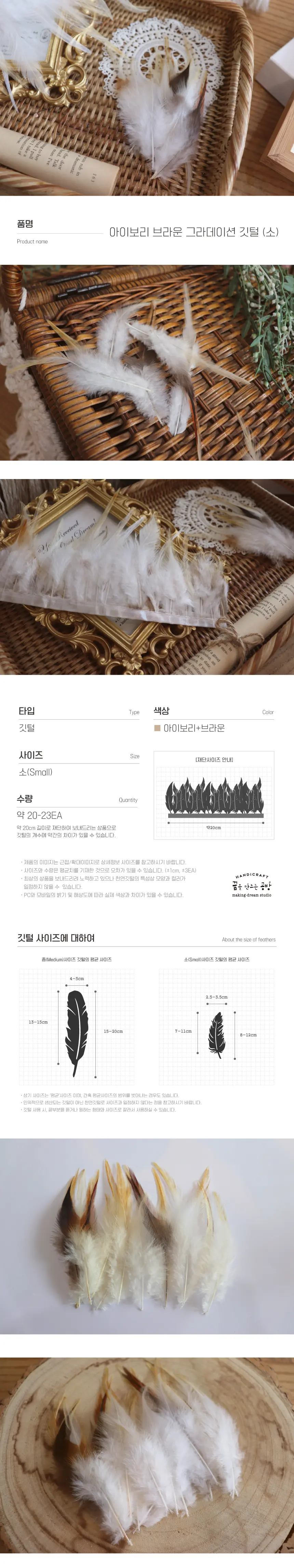 아이보리와 브라운이 섞여있는 그라데이션 (소) 깃털입니다.