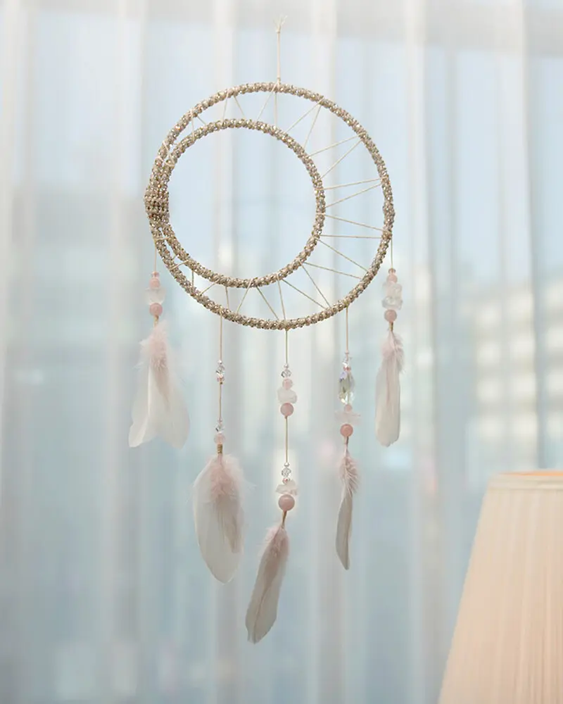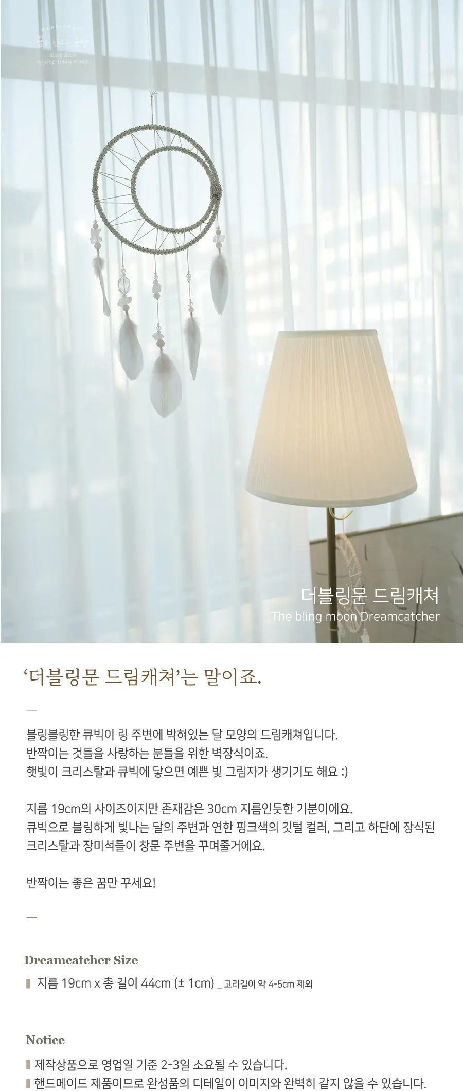 블링블링한 큐빅이 링 주변에 박혀있는 달 모양의 드림캐쳐 반짝이는 것들을 사랑하는 분들을 위한 벽장식이죠!