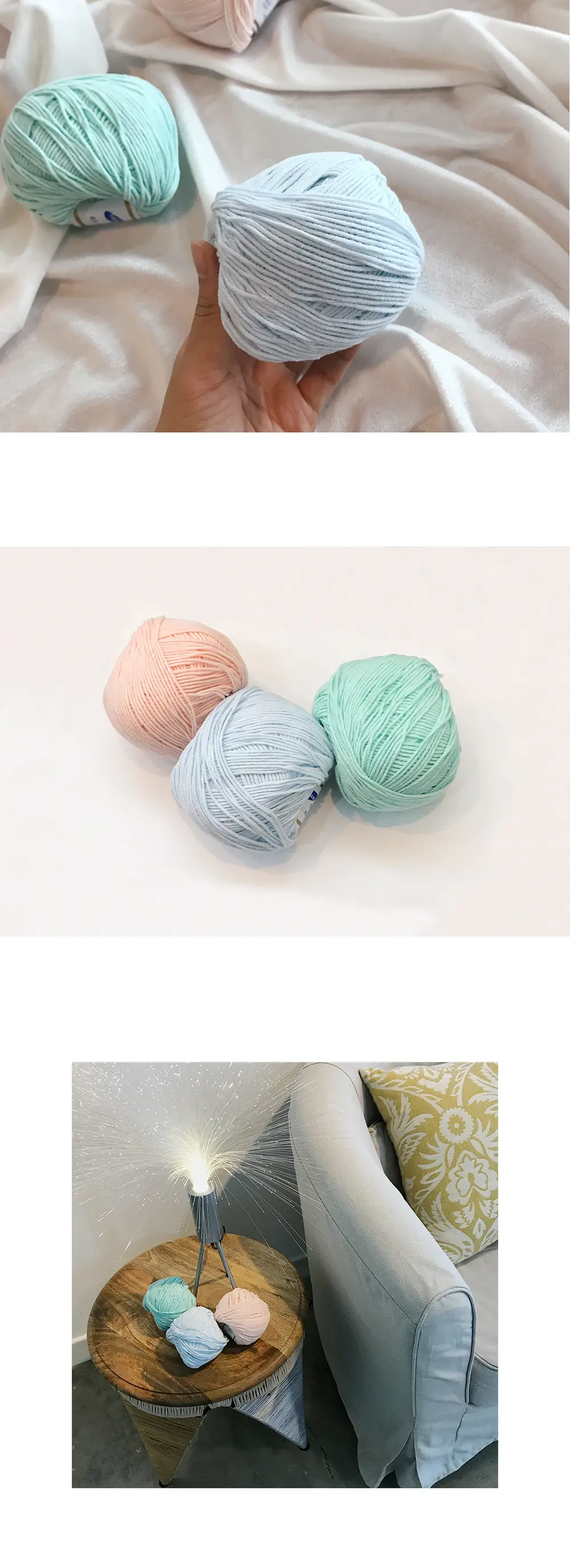 드림캐쳐를 만들기 위한 기본 재료인 털실-코튼 민트