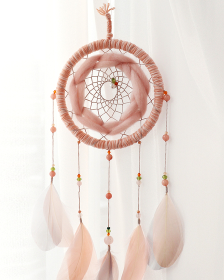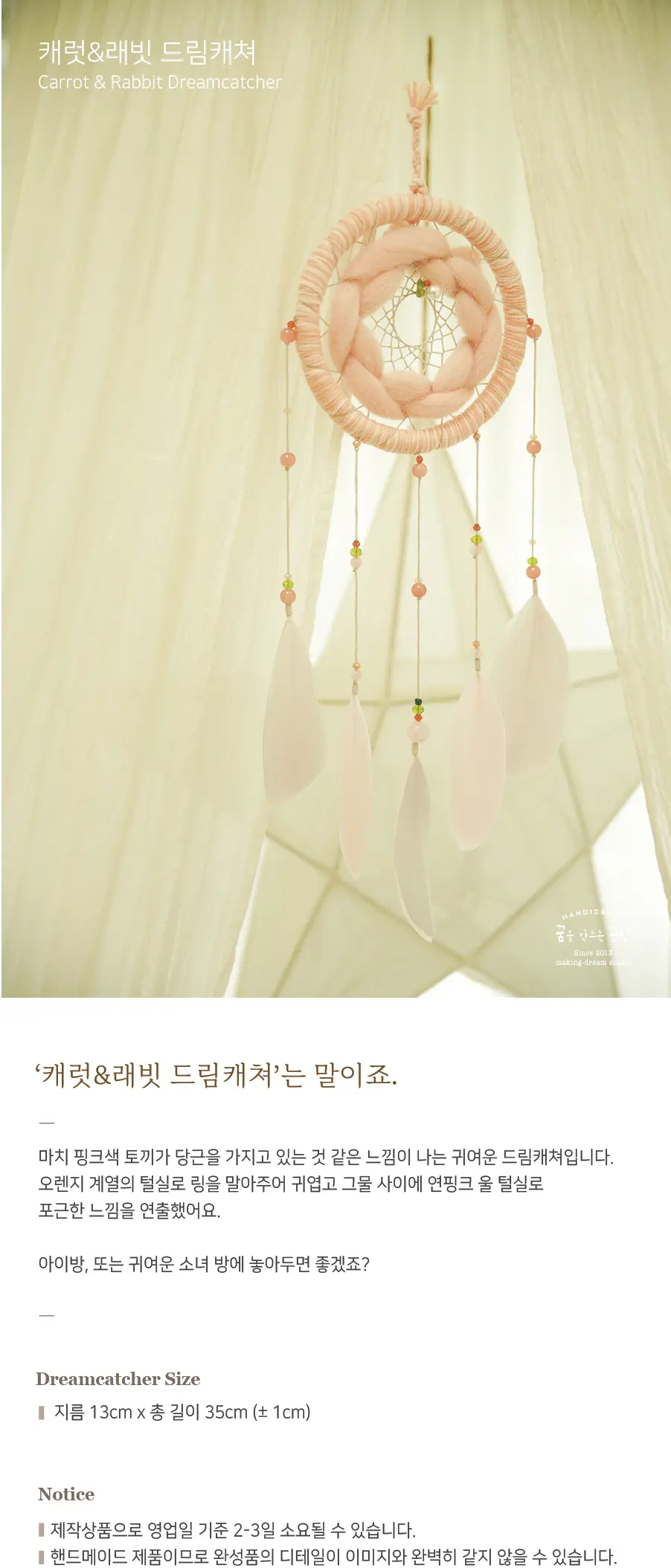 오렌지와 파스텔핑크가 어우러진 위빙스타일 드림캐쳐 아이방 꾸미기에 좋아요