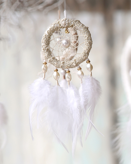 6월 탄생석인 진주가 투명한 수정과 함께 잘 어우러진 순백의 드림캐쳐